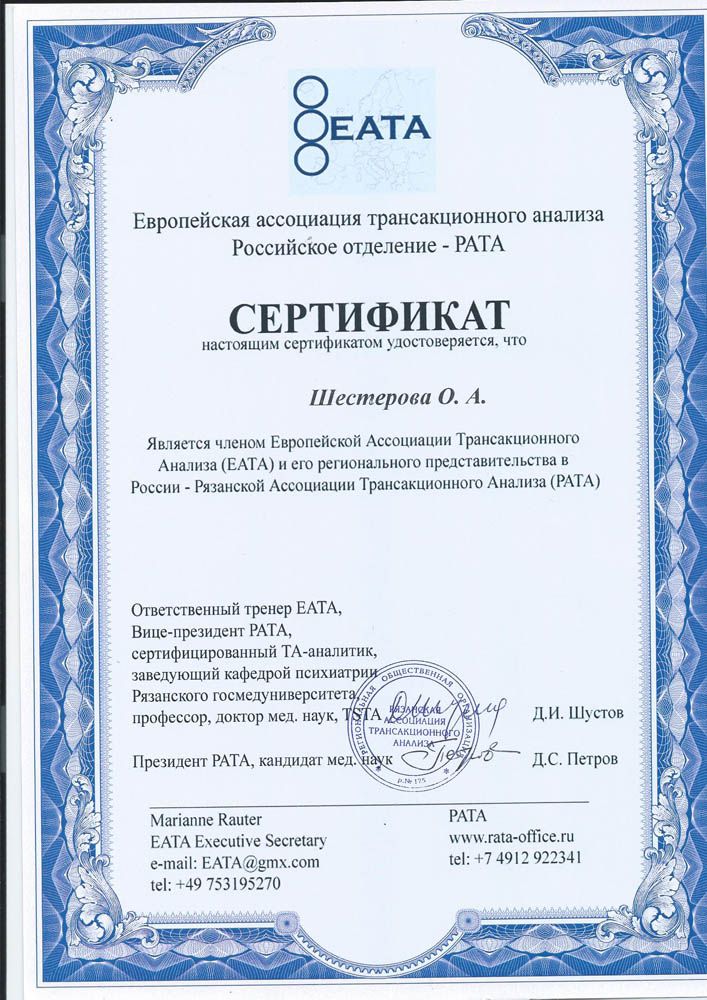 Является членом Европейской Ассоциации Трансакционного Анализ (ЕАТА)
