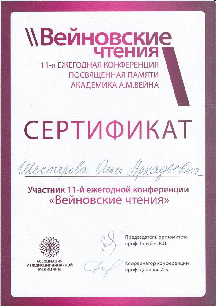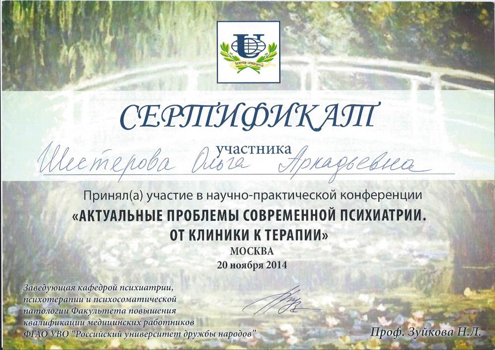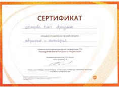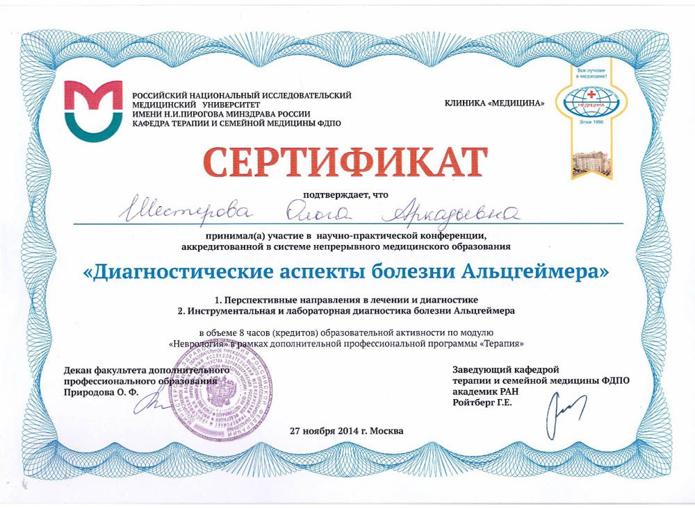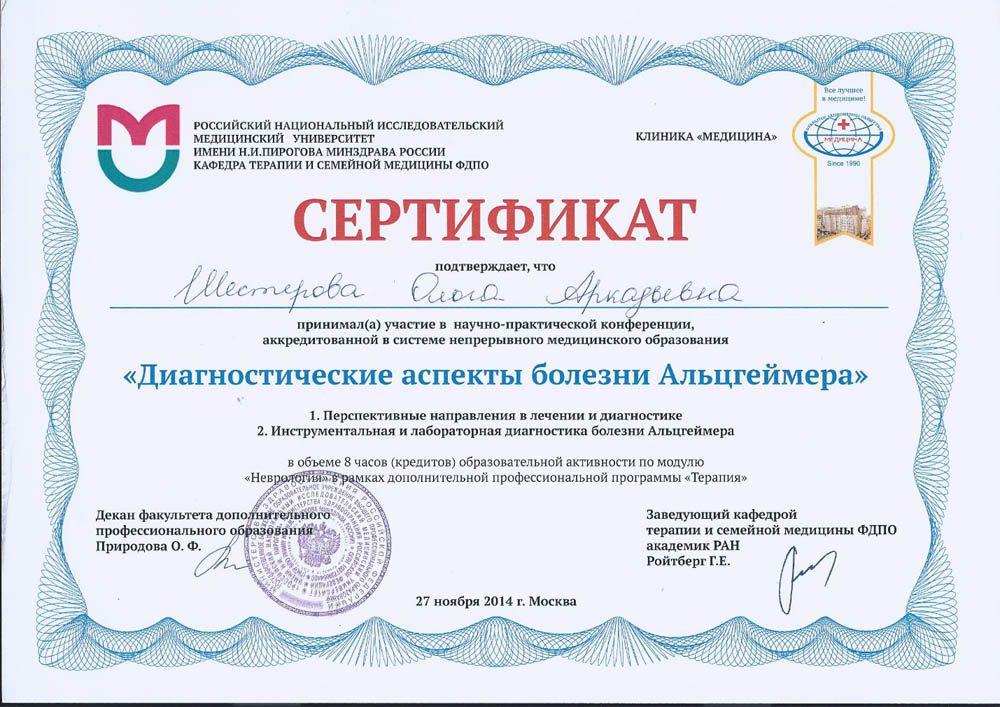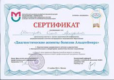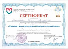 - 2014 г.- Участник научно-практической конференции «Диагностические аспекты болезни Альцгеймера».