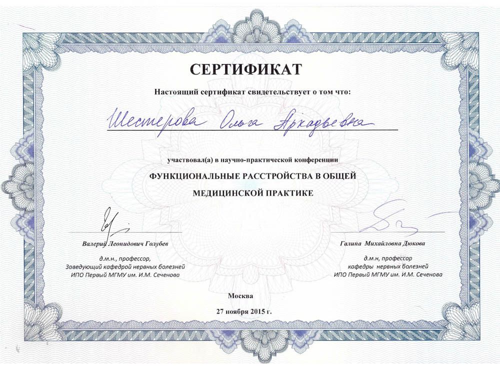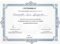 - 2015 г- Участник научно- практической конференции «Функциональные расстройства в общей медицинской практике».